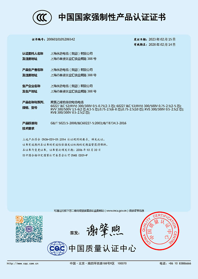 下一篇 : 中国国家强制性产品认证证书-聚氯乙烯绝缘无护套电缆电线