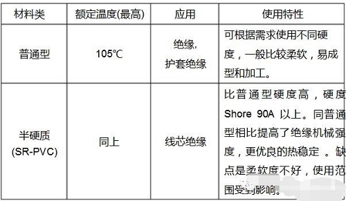 3)在耐温方面,通过对材料配方优化改进,目前常用的PVC绝缘类型主要有以下三类: